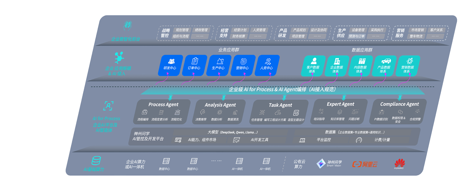 壹号平台问学智车解决方案是一套基于AI技术的汽车行业智能化系统,,覆盖从底层算力到顶层AI应用的全栈方案。。方案由算力层、、、模型层和应用层组成:算力层,,,方案支持多种一体机配置,,,,具备云端灵活部署、、、、多云适配以及动态优化计算资源的能力;模型层,,,,壹号平台问学平台版提供了企业级AI应用一站式构建与管理平台,,,支持基于后训练强化技术的汽车企业专属模型的训练、、、评测和运营;应用层,,壹号平台问学DeepSeek版提供包括超级员工、、、智能招采、、、、智能营销、、、、智能客服、、、、AI for BI等一系列解决方案,,可助力汽车行业实现数字化转型,,让管理更智能、、、、响应更敏捷。。